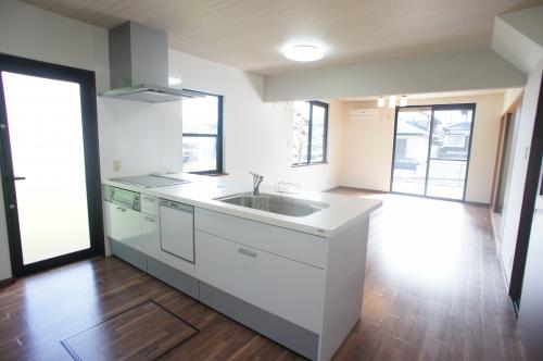 最近は冷蔵庫が大きかったり、キッチンに2人以上立つこともあるので、対面キッチン裏の空間を広くとっています。またフラット対面なので、LDK空間自体に開放感を感じられるようになりました。