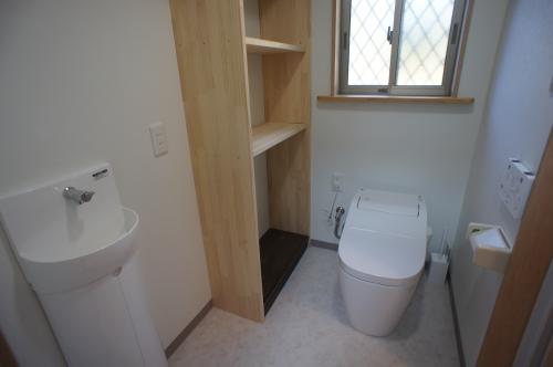 サッシがつくと、内外部の工事が進めることができるので、あとは新築住宅と変わらないのですが、今回は昔使われていたものを活かしながらのリフォームなので、収納の板をトイレの棚板に使ったり、キッチンもあえて昔のステンレスの流し部分を残して生まれ変わりました。